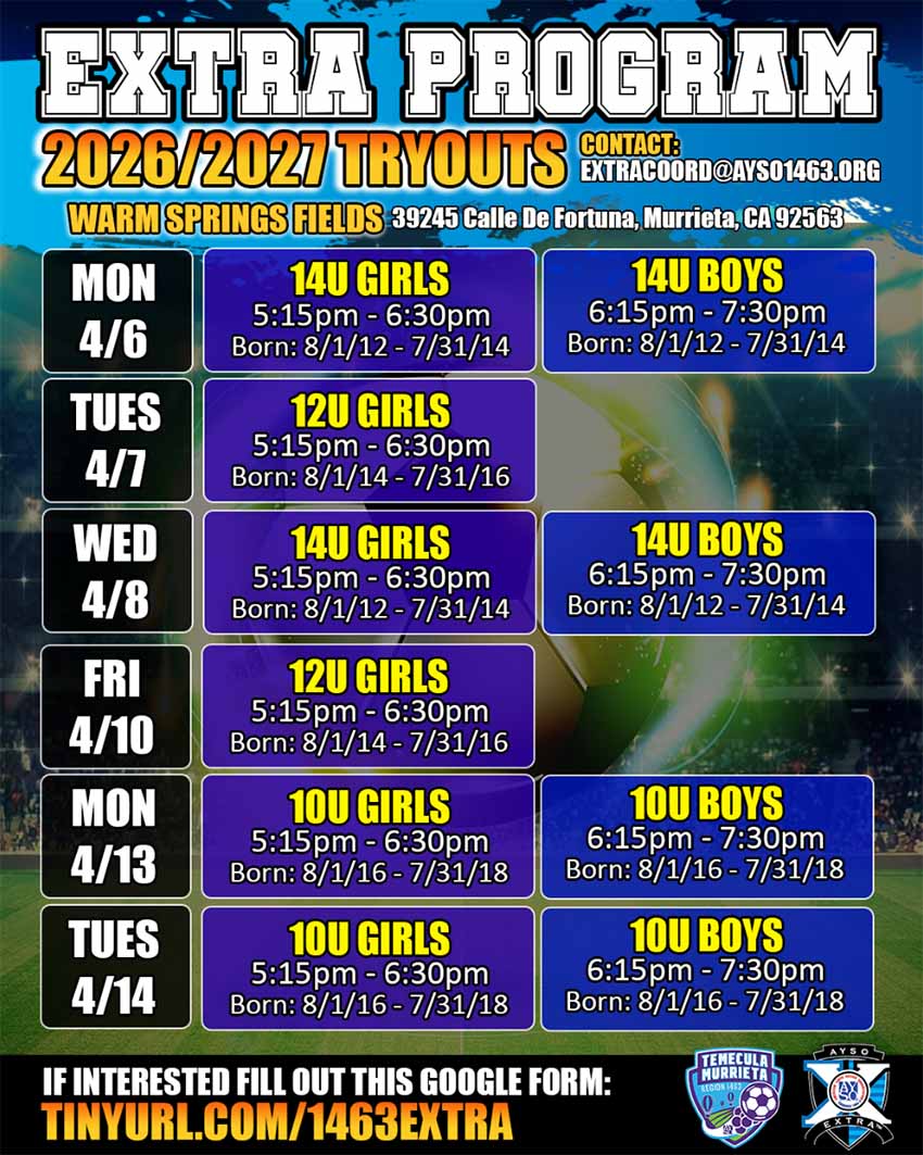 Coach your Extra team throughout the calendar year. In addition to competing in the Fall season, Extra teams will continue training / competing in Spring season and summer tournaments as desired.